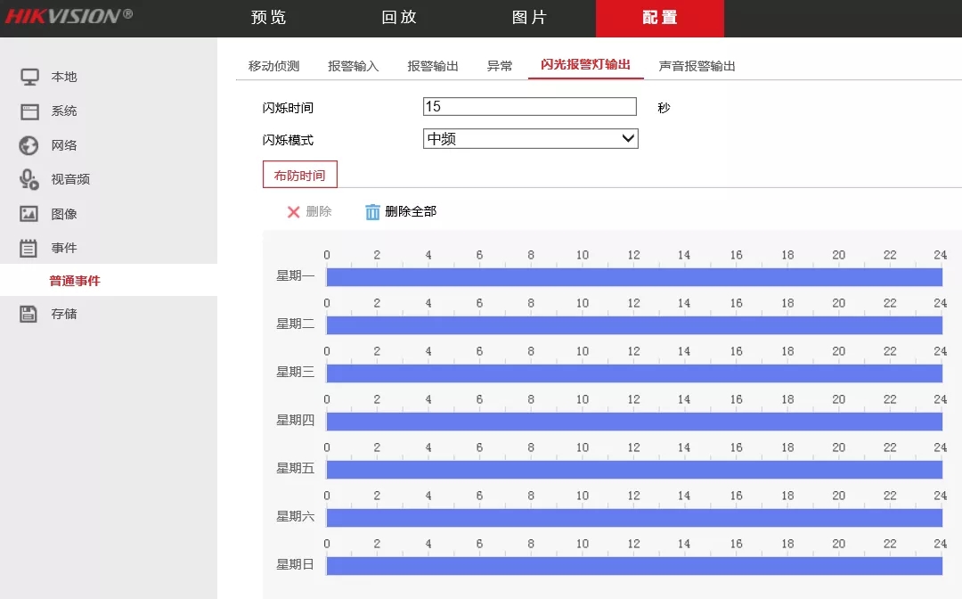 設(shè)置好布防時(shí)間(默認(rèn)7 x 24h)。