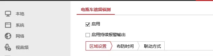 3)啟用“電瓶車遺留偵測”功能,繪制觸發(fā)規(guī)則區(qū)域。